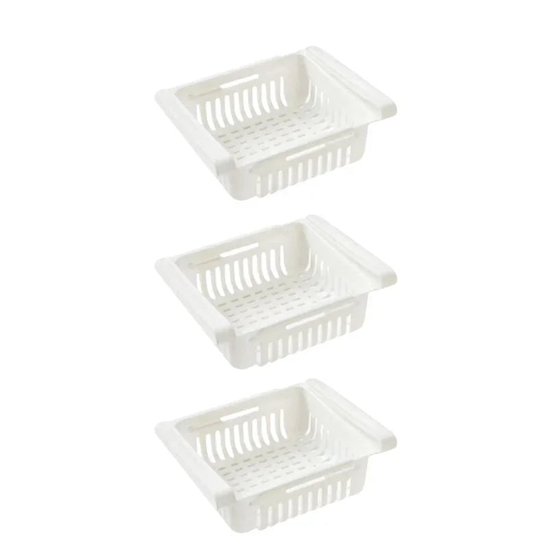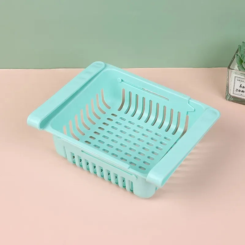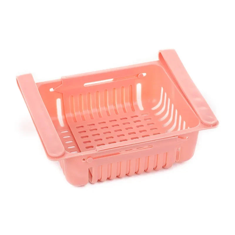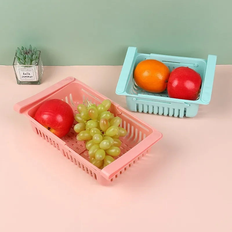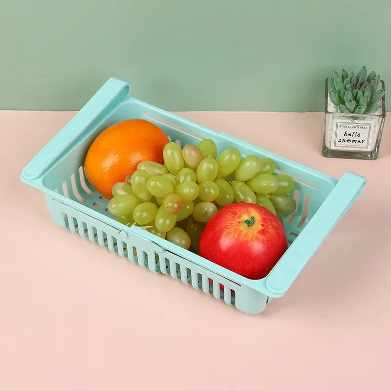 Use aquele espaço vazio sob a prateleira da sua geladeira e dobre seu espaço de armazenamento. Sua geladeira sempre organizadas. Dobre o espaço de sua geladeira!