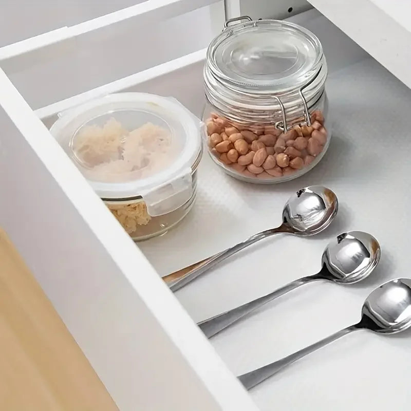 A versatilidade desse produto vai além das gavetas, sendo perfeito também para forrar geladeiras, garantindo uma camada adicional de proteção. Sua qualidade excepcional é evidente na resistência a fungos e mofo, proporcionando uma solução duradoura e higiênica. Tem a capacidade de ser cortado conforme a necessidade e permite uma adaptação perfeita a qualquer móvel.