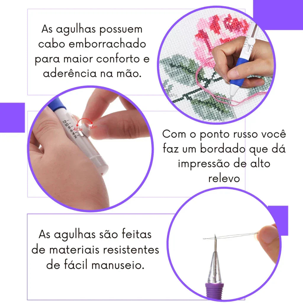 Chega de limitações! Nosso Kit de Agulhas Profissionais foi projetado para proporcionar uma experiência incrível, desde iniciantes até experts. Muito simples de usar e em pouco tempo você estará criando lindos bordados. Dê os primeiros passos no fascinante mundo do bordado conosco!