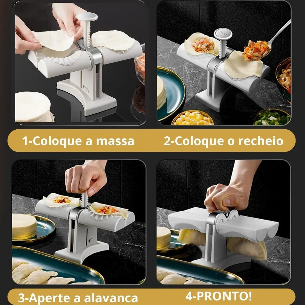 A Máquina de Pasteis Pro™ permite fazer pastéis deliciosos sem esforço. Basta colocar a massa aberta, o recheio, apertar e pronto! Você terá pastéis perfeitos e suculentos de uma maneira fácil e rápida.