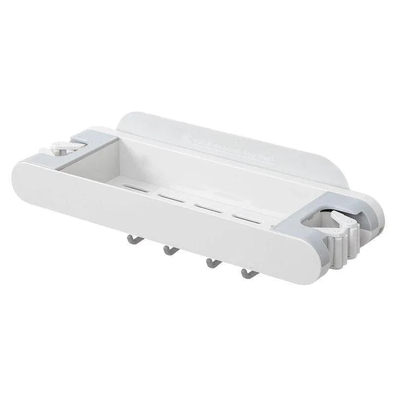 Com ganchos dos dois lados para prender qualquer utensilio de cabo como, vassouras, rodos, mops, guarda chuvas, etc...