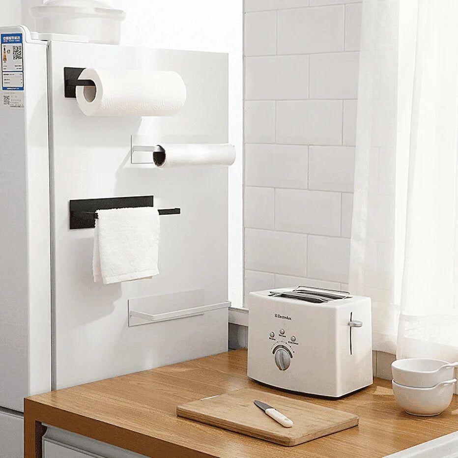Ideal para pendurar papel toalha, panos de prato, panos de limpeza descartáveis e até rolos de saco lixo, sua cozinha merece esse acessório.